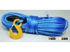 orange red Colour Synthetic Basic Winch Rope Set, 12mm X 45 Meter length, Breaking strength 13500 KG with one side eye splices, Stainless steel black Tube thimble, yellow Hook, black Sleeve, and , the other Side straight end, silver Mounting lug, ,