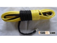 yellow Colour Synthetic Basic Winch Rope Set, 9mm X 30 Meter length, Breaking strength 8500 KG with one side eye splices, Stainless steel silver Thimble, black Hot shrink, , and , the other Side straight end, square silver Lug, black Sleeve,